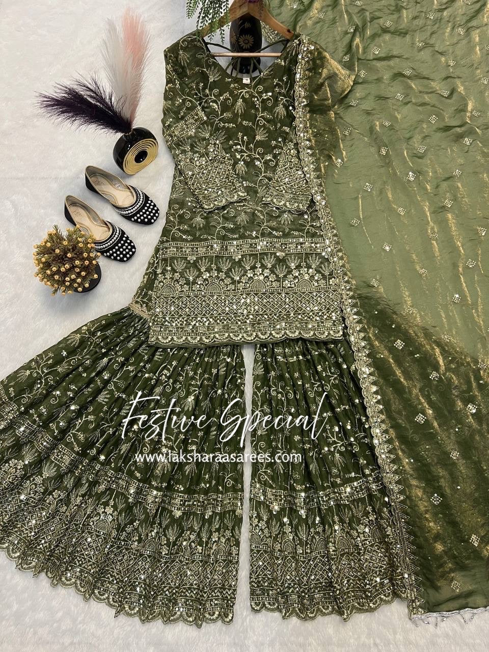- Fabric: Heavy Fandy Crushi Silk with 5mm Sequence Embroidery Work
