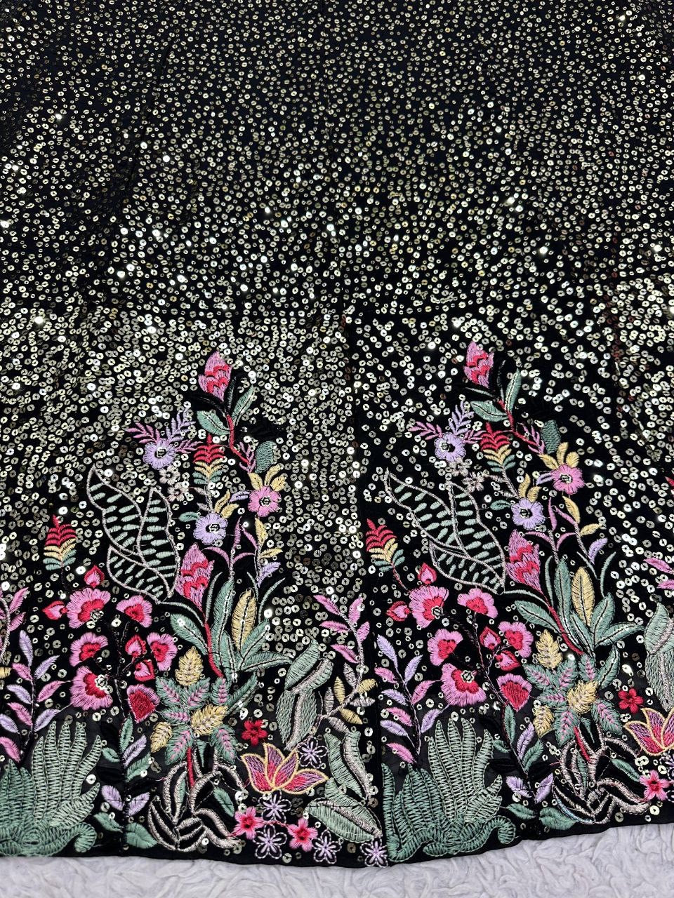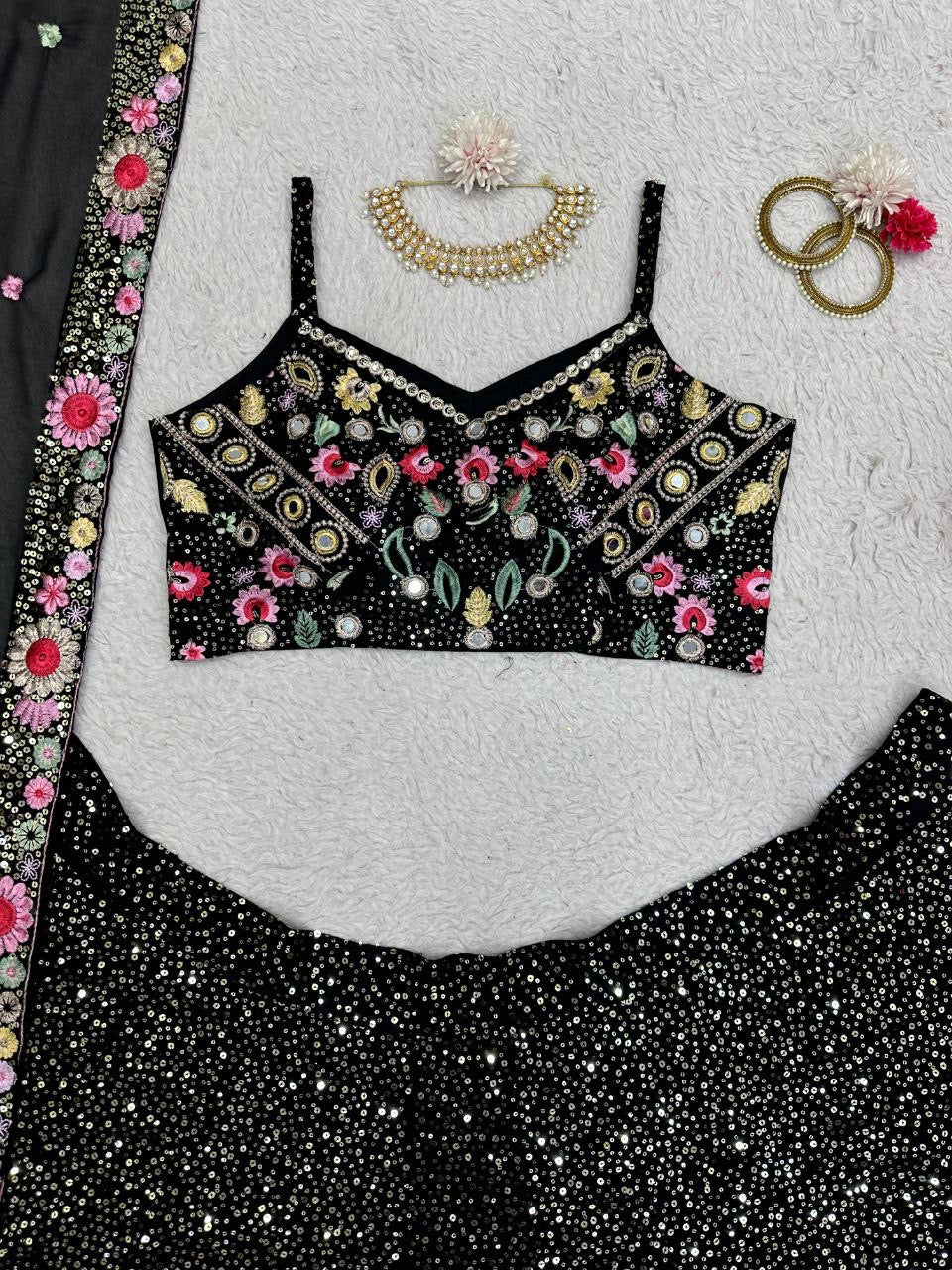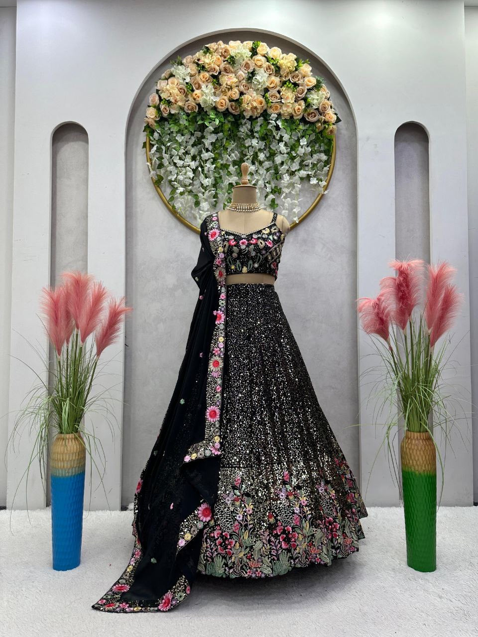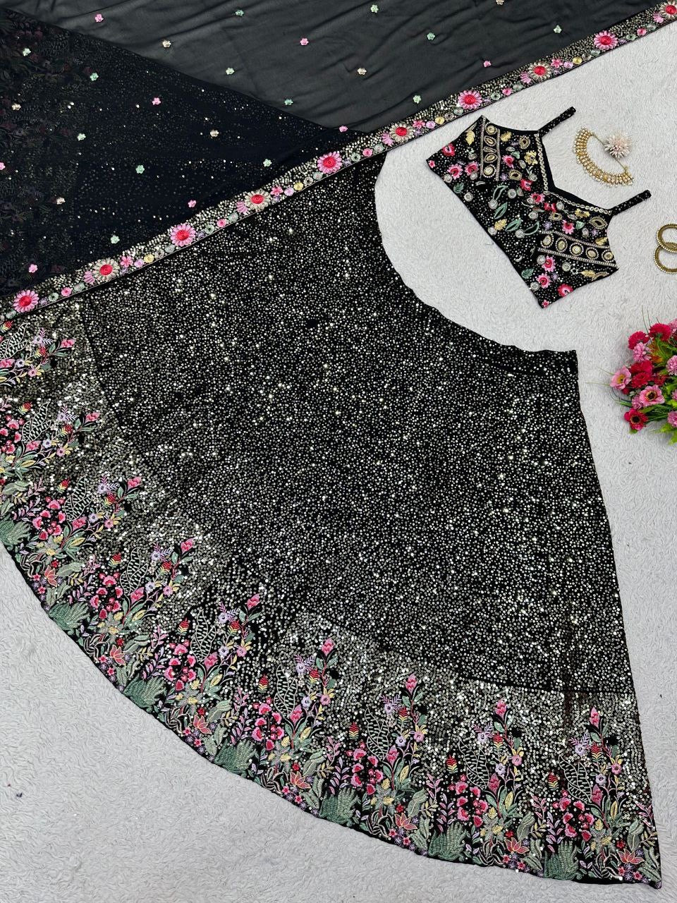 ALINAA — Black x Floral Sequinned Georgette Lehenga