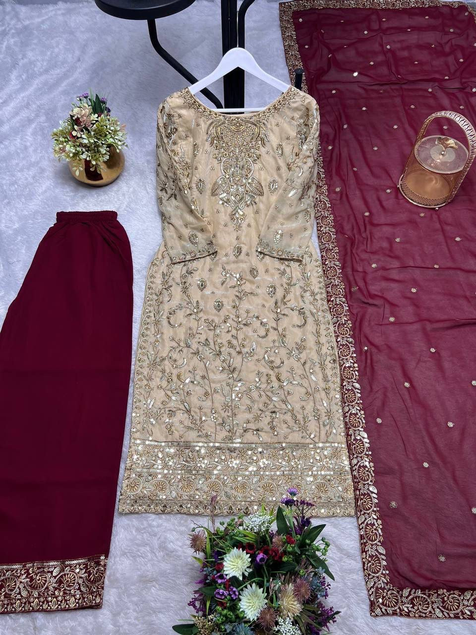 MEHER — Cream X Red Eid Special Pakistani Suit