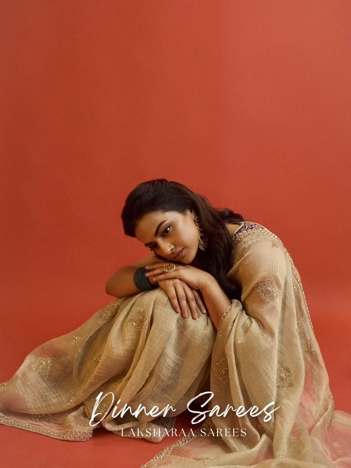 SHRADA — Gold x Purple Shimmer Georgette Saree