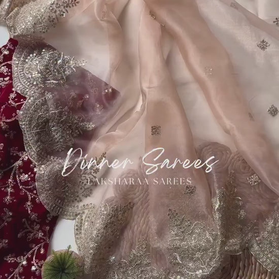 ALICIA — Pretty Peach X Red Shimmer Tissue Saree with Embroidered Blouse